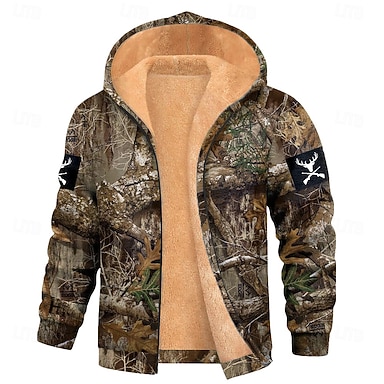 Per uomo Mimetico Pile Felpa con Cappuccio Giacca di pelle Felpa Classico Militare Da caccia Girocollo All'aperto Campeggio Verde Rosso rosa Con zip Autunno Inverno progettista S M L XL 2XL 3XL