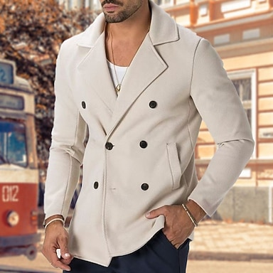 Per uomo Blazer Trench Casual Quotidiano Foderato Tradizionale / Classico Primavera Autunno & Inverno Stoffa di lana Colore Solido / Tinta Unita Base Casual / Quotidiano Doppiopetto Giacca Nero