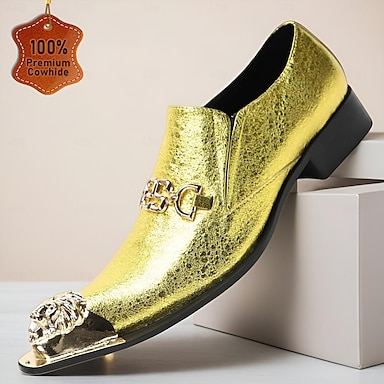 mocassini slip-on da uomo in metallo dorato con punta affilata – scarpe glam rock in pelle di vacchetta per spettacoli teatrali, discoteche e feste formali