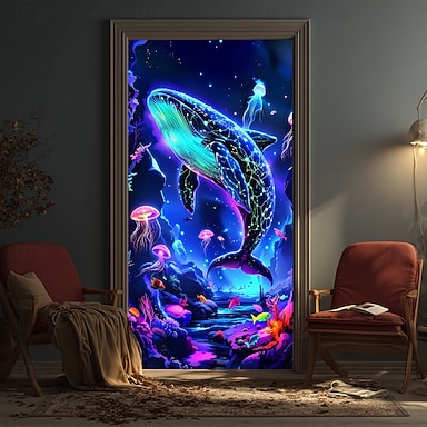 balena galassia medusa barriera corallina porta striscione arazzo da parete fantasia oceano notte stellata arredamento per la casa decorazione porta d'ingresso decorazione ingresso interno esterno