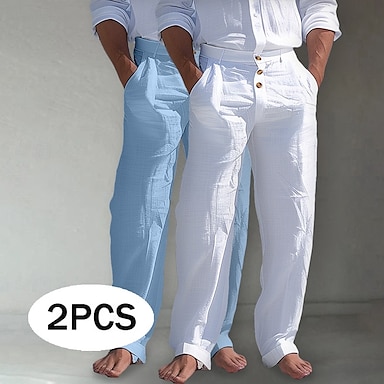 Per uomo Pantaloni di Lino Pantaloni Pantaloni Estivi Pantaloni da Spiaggia Tasca Frontale Gamba Dritta Confezione multipla Semplice Comodità Traspirante Lunghezza intera All'aperto Affari Quotidiano