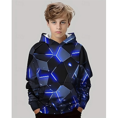 Ragazzi 3D Grafico Geometrico Felpa con Cappuccio Maglione Manica Lunga Stampa 3D Primavera Autunno Sport Moda Streetwear Bambini 4-12 Anni Con cappuccio All'aperto Casuale Quotidiano Vestibilit