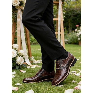 scarpe da uomo in similpelle marrone con stampa coccodrillo - design alla moda con vestibilità comoda, ideali per abbigliamento casual e alla moda e per matrimoni