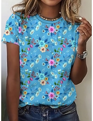 Per donna Maglietta Stampato Floreale Grafico Piante Elegante Classico Casual Manica Corta Girocollo Top Regolari Quotidiano Blu Bianco Giallo Rosa Viola Estate Primavera