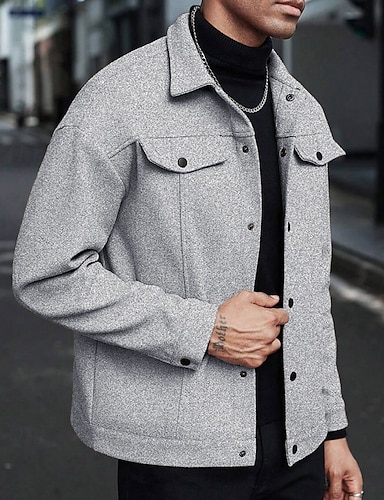 Per uomo Giacca Leggera Giacca Cargo Giacca Casual Vacanza Quotidiano Caldo Tasca Autunno Inverno Semplice Moda Classico Bavero Regolare Nero Vino Grigio chiaro Giacca