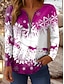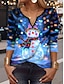 Natale Per donna Maglietta Grafico Pupazzo di neve Elegante Casual Manica Lunga Scollo a V Top Regolari Quotidiano Bottoni Stampato Blu Rosso Viola Verde Autunno Inverno