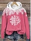 Felpa Natalizia da Donna con Fiocco di Neve Moda Casual a Maniche Lunghe con Cappuccio Tops Regolari Quotidiani Casual Stampa con Coulisse Rosso Blu Viola Verde Autunno Inverno