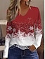Natale Per donna Maglietta Grafico Fiocco di neve Vintage Elegante Classico Manica Lunga Scollo a V Top Regolari Quotidiano Stampato Nero Rosso Primavera Autunno Inverno
