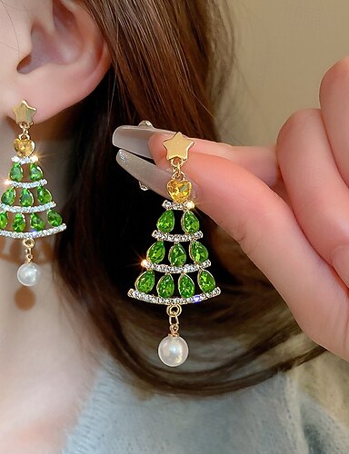 orecchini albero di Natale – orecchini natalizi in cristallo verde scintillante con dettagli a stella e perla per donna