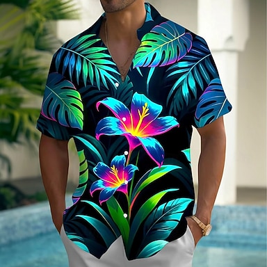 Per uomo Fiori tropicali Foglia di palma Bagliore al neon Camicia hawaiana estiva Camicia con Bottoni Camicia Aloha Manica Corta Hawaiano Vacanza Estate Primavera Collo ripiegato Stampa 3D camicie