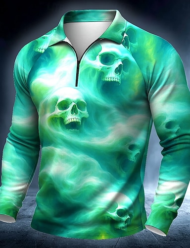 Giorno dei Morti Per uomo Teschio Teschi Polo Manica Lunga Magliette polo Casual Scuro All'aperto Streetwear Abbigliamento quotidiano Stampa 3D Polo con cerniera a un quarto Primavera Autunno Inverno