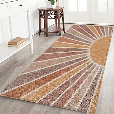 tappeto da corridoio con motivo geometrico a sole, tessuto di flanella stampato, decorazione per pavimenti per la casa, zerbino antiscivolo morbido, tappeto per ingresso e bagno