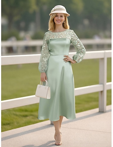 Linea ad A Lunghezza Tè Vestito da Festa Abito da Cocktail Abito da invitata a nozze Abito da cerimonia per signora Manica Lunga Scollo a Barca Elegante Cocktail Ospite di nozze Festa di fidanzamento