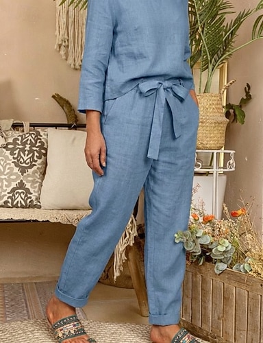Per donna Pantaloni Eleganti Pantaloni Moda Streetwear Lunghezza intera Naturale Semplice Tasca Design con Coulisse Elastica All'aperto Confortevole All'aperto Vacanza Aalbicocca Blu cielo chiaro
