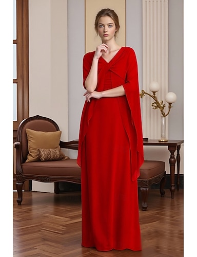 Tubino Colonna Lunghezza al pavimento Vestito da Festa Abito da Cocktail Abito da invitata a nozze Abito da cerimonia per signora Mezza Manica Scollo a V Elegante Minimalista Formale Ospite di nozze