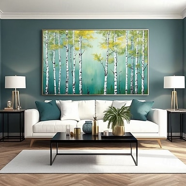dipinto a olio su tela di betulla argentata fatto a mano, originale paesaggio di foresta di betulle verdi, opera d'arte strutturata, decorazione della camera da letto, dipinti d'arte murale del