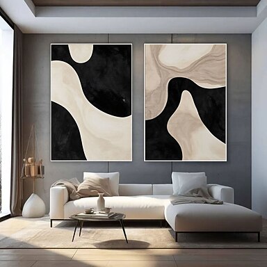 dipinto a mano astratto camera da letto pittura a olio arte murale fatta a mano dipinti neri e beige arte murale 2 pezzi pittura artistica set poster astratto arte murale neutra arte soggiorno pittura