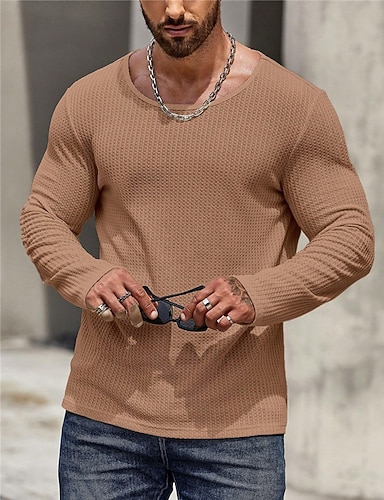 Per uomo maglietta Camicia Henley Waffle Camicia Henley T-shirt Maglia a maniche lunghe Liscio Henley Strada Da mare Manica lunga Abbigliamento Di tendenza Originale Essenziale