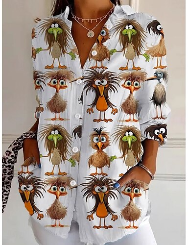 Camicia da donna per Pasqua in lino traspirante leggera grafica animale elegante bohemia vintage manica lunga colletto top regolari lavoro quotidiano bottoni stampa bianca gialla blu primavera