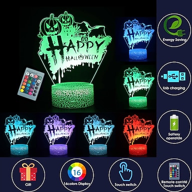 halloween 3d night light lamp anime 16 cambia colore regali di compleanno di halloween decorazioni di halloween per la camera da letto dei bambini (incubo prima di natale)