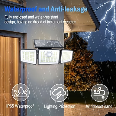 Lampada da parete solare con testa pieghevole da 120 cm, rilevamento a infrarossi remoto, 3 modalità di illuminazione, pannello solare efficiente impermeabile IP65, 1 pezzo