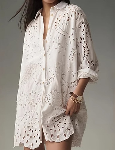 Per donna Camicia casual Camicia con Bottoni Blusa Traforato Bottoni Quotidiano Elegante Casual Manica Lunga Collo ripiegato Top lunghi Quotidiano Abbigliamento da vacanza Bianco Estate Primavera