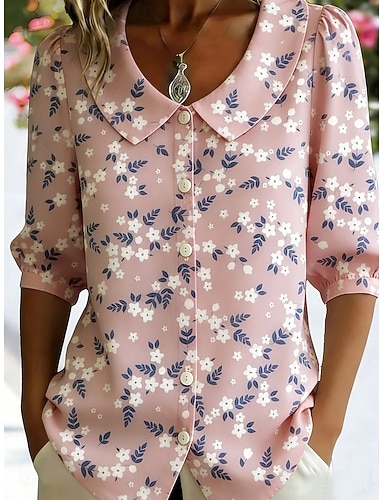 Per donna Camicia Camicia Boho Floreale Grafico Elegante Bohemien Vacanza Manica 3/4 Collare Peter Pan Top lunghi Quotidiano Ferie Uscire Blu Rosa Viola Verde Estate Primavera