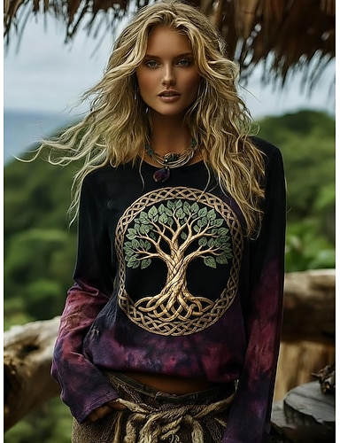 Per donna Camicia Boho Maglietta Stampato Grafico Bohemien Vintage Casual Manica Lunga Girocollo Top Regolari Quotidiano Weekend Abbigliamento da vacanza Nero Estate Primavera Autunno