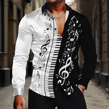 Per uomo Note musicali Camicia Camicia con bottoni Manica lunga Informale Formale Estate Primavera Autunno Collo ripiegabile Bottoni Stampa Bianco Blu Viola Albicocca