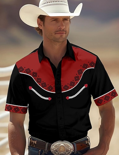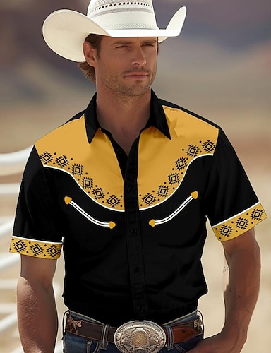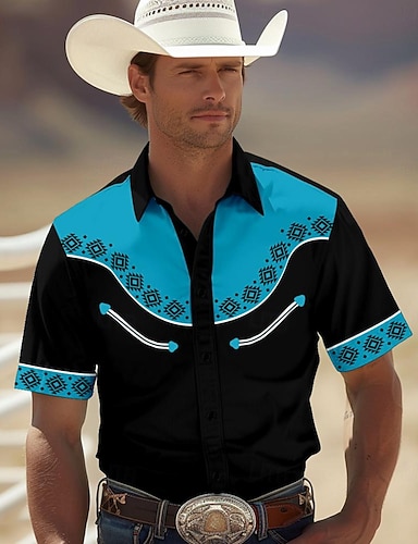 Per uomo Camicia Camicia Western Camicia da cowboy Manica Lunga Vintage Stile Western All'aperto Streetwear Casual Quotidiano Autunno & Inverno Collo ripiegato Bottoni Stampato Nero