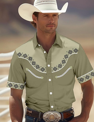Per uomo Cowboy Camicia Western Camicia con Bottoni Camicia da cowboy Manica Lunga Vintage Stile Western Casual Quotidiano Autunno & Inverno Primavera Collo ripiegato Stampa 3D Tasca Frontale Kaki