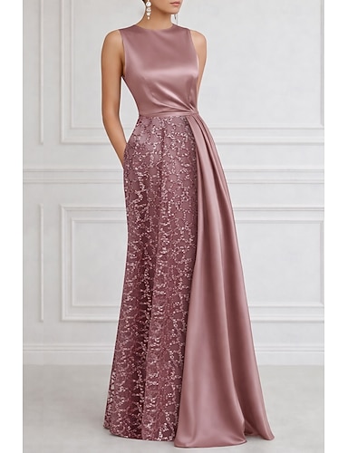 Tubino Colonna Lunghezza al pavimento Abito Formale Abito da sera Abito da cerimonia per signora Senza Maniche Monospalla Elegante Vintage Formale Raso con Fiocco/Fiocchi Ricamo