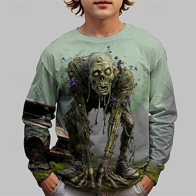 Halloween Ragazzi 3D Grafico Maglietta Manica Lunga Primavera Autunno Moda Essenziale Bambini 4-12 Anni Girocollo All'aperto Casuale Quotidiano Vestibilità regolare