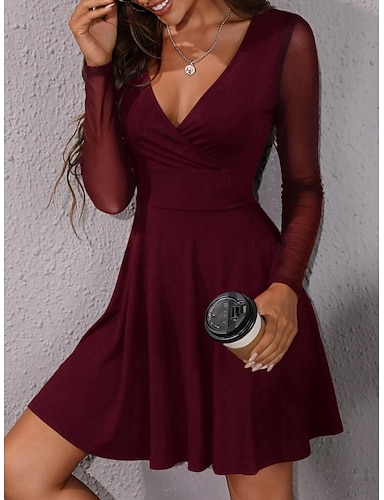 Per donna Mini Abito Abito a trapezio Casual Quotidiano Vestibilità regolare Semplice Manica Lunga Scollo a V Nero Vino Primavera Autunno