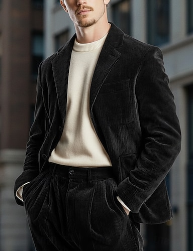 Uomo Abito in velluto a coste Casuale Semi-Formale Nero Borgogna Autunno & Inverno Tuta Bavero classico Moda Casual A righe Vestibilità su misura 2 pezzi Monopetto Due Bottoni