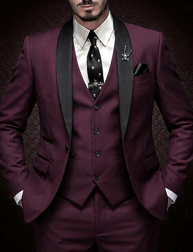 Uomo Smoking Abiti da sposa Casuale Affari Borgogna Primavera, Autunno, Inverno, Estate Tuta Bavero classico Formale Tinta unita Vestibilità aderente 2 pezzi Monopetto a un bottone
