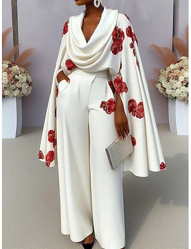 Per donna Set di Pantaloni Bolero Top Manica Lunga Floreale Elegante Moda Streetwear Casuale Quotidiano All'aperto Bianco Autunno Vestibilità regolare