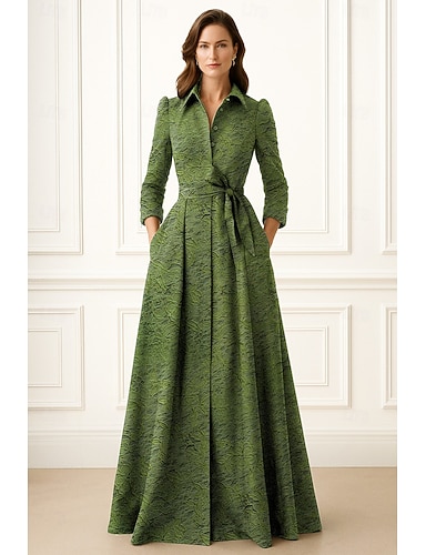 Linea ad A Lunghezza al pavimento Abito Camicia Abito da invitata a nozze Abito Formale Abito da cerimonia per signora Manica Lunga Colletto a Camicia Elegante Vintage Formale Tessuto Elasticizzato