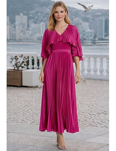 Linea ad A Lunghezza al pavimento Lunghezza alla caviglia Abito da Sera Elegante Quotidiano Setoso Mezza Manica Scollo a V Matrimonio Formale Raso con Pieghe