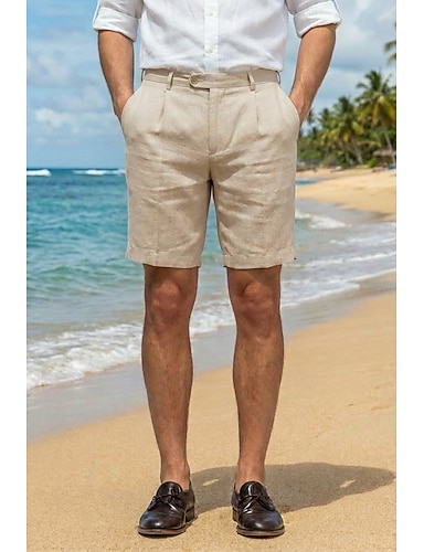 Uomo Cotone Lino Pantaloni casual Pantaloncini Estivi Quotidiano Spiaggia Vacanza Elegante Leggero Azzurro cielo Verde salvia Beige Estate Pantaloni Tinta unica Vestibilità su misura Corto Inelastico