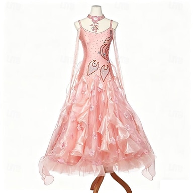 Linea ad A Lunghezza al pavimento Abito da Sera Elegante Scintillante Brillanti Manica Corta Collo Alto Festa serale Matrimonio Tasca Raso Tulle con Pieghe Perline ricamate