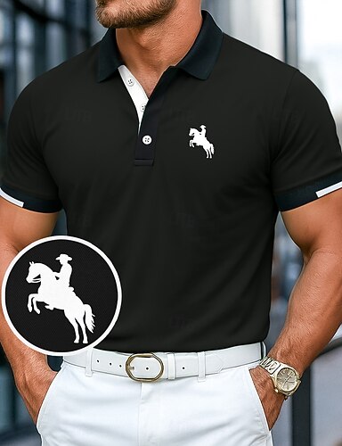 polo con risvolto da uomo polo con grafica polo con bottoni polo camicia polo in cotone animale dinosauro stampe grafiche couverture marrone stampa personalizzata nero bianco giallo outdoor street