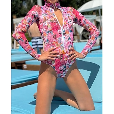 Per donna Top sottomuta Costume da bagno Costume Intero Stampato Con zip Protezione Solare UV UPF50+ Manica Lunga Costume da Bagno Surf Nuoto Estate