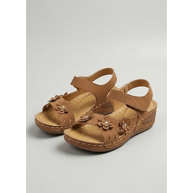 sandali con zeppa floreali marroni da donna - soletta morbida e ammortizzata, scarpe comode traspiranti con punta aperta, stile boho casual per passeggiate, viaggi, vacanze estive, attività