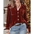 Per donna Camicia Velluto Blusa Semplice Elegante Manica Lunga Colletto a Camicia Top Regolari Natale Ferie Uscire Bottoni Blu Vino Verde militare Primavera Autunno