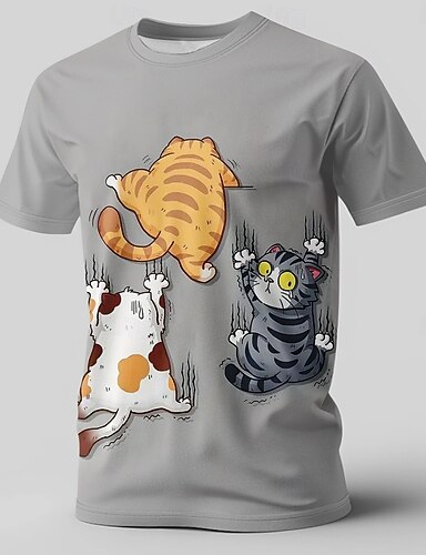 Per uomo Gatto Divertente Maglietta Manica Corta maglietta Stampa 3D Girocollo Camicia Esagerato Designer Feste Ferie Grigio Estate Primavera Abbigliamento S M L XL XXL XXXL