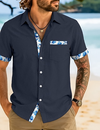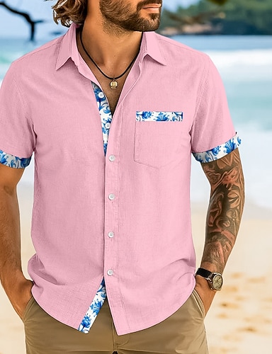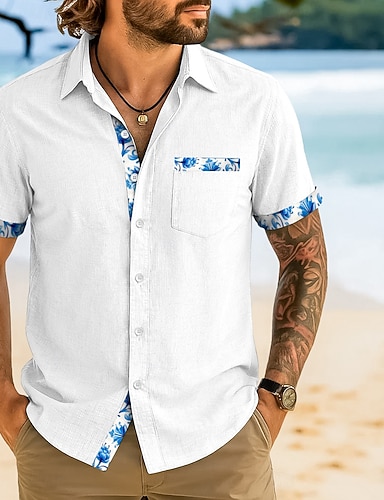 Per uomo Camicia Camicia di lino Camicia in cotone e lino Camicia bianca di cotone Camicia Estiva Camicia da Spiaggia Sfumatura Vacanza Streetwear Nero Bianco Giallo Blu Manica Corta Bavero Estate