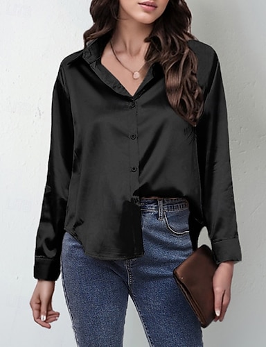 Per donna Camicia Elegant Top in raso Blusa Bottoni Semplice Elegante Manica Lunga Colletto a Camicia Top Regolari Ferie Uscire Nero Bianco Champagne Vino Blu Reale Estate Primavera