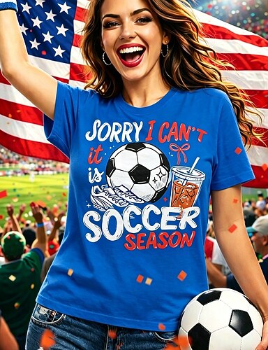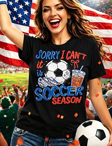 t-shirt da calcio da donna con stampa grafica, lettera, elegante, classica, casual, manica corta, girocollo, top regolari, casual, quotidiano, blu, nero, rosso, verde, estate, primavera