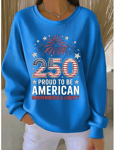 Giorno dell'Indipendenza Anniversario Americano Patriottico Pullover da Donna Grafica Lettera Calda Classica Casual Maniche Lunghe Girocollo Casual Casa Stampa Blu Nero Bianco Rosso Primavera Autunno